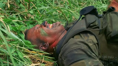 Kate cons Keamy into thinking the others are chasing her and as they're distracted, the others move into place to attack. They use there old school tactics like swinging down from trees, tripping their enemies and using a stun gun before tossing a grenade at Keamy. He kicks it towards Omar who is thrown through the air by the explosion.